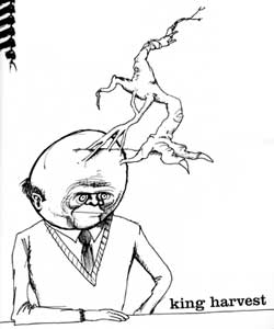 harvested, barrels of seed and wheat