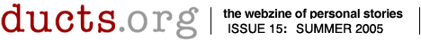 Ducts will present the next installment of Brandon's novel in our Winter, 2006 issue.